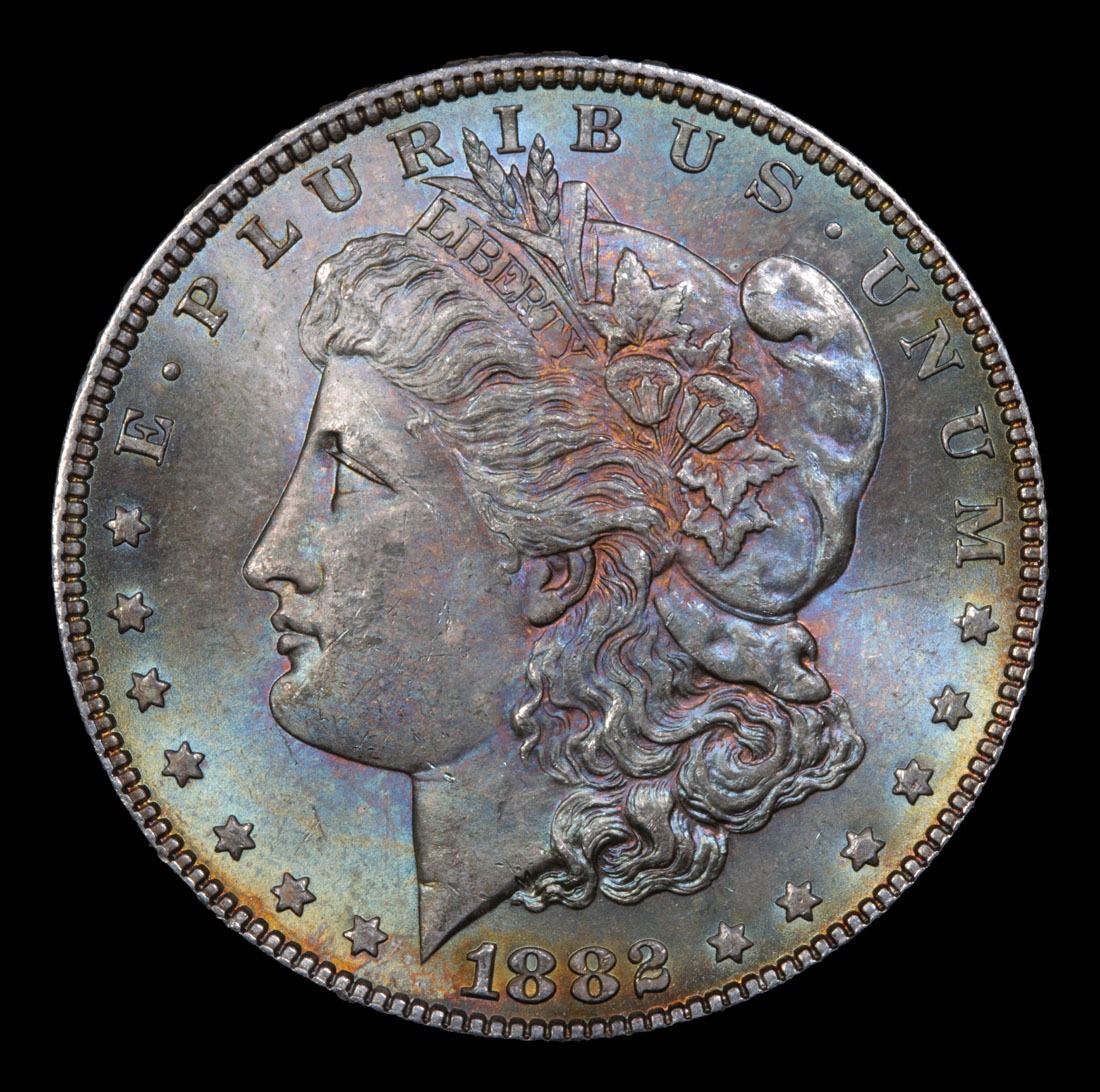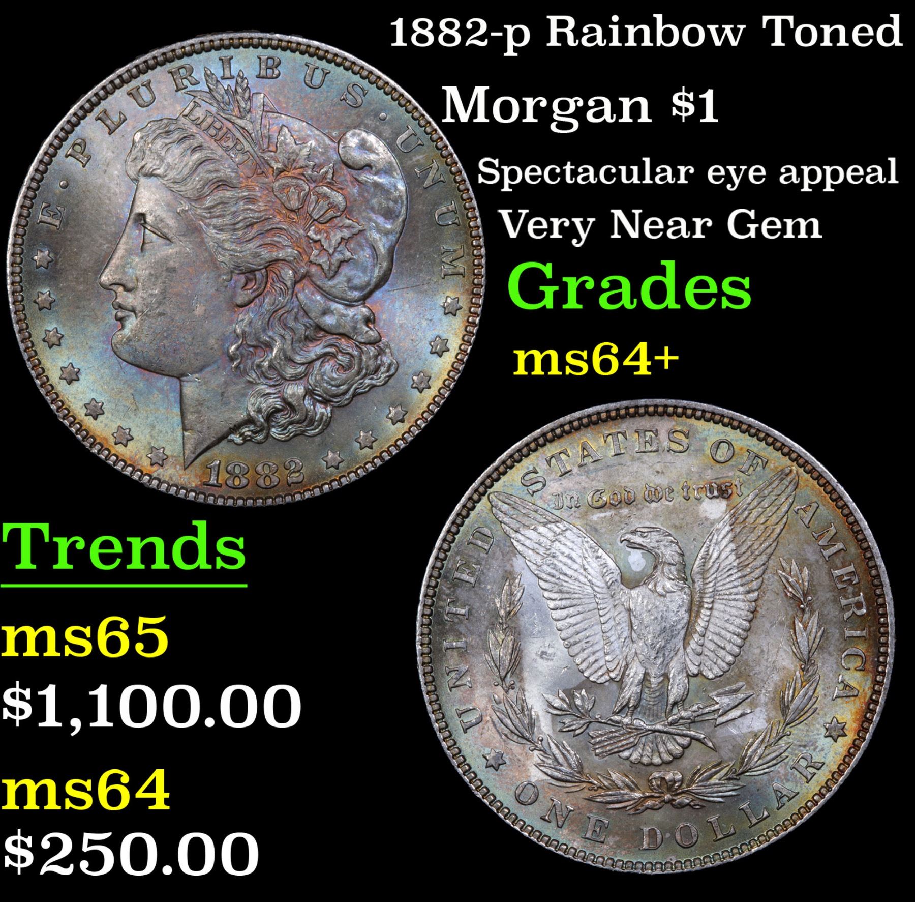 1882-p Rainbow Toned Spectacular eye appeal Very Near Gem Morgan Dollar $1 Grades Choice+ Unc.