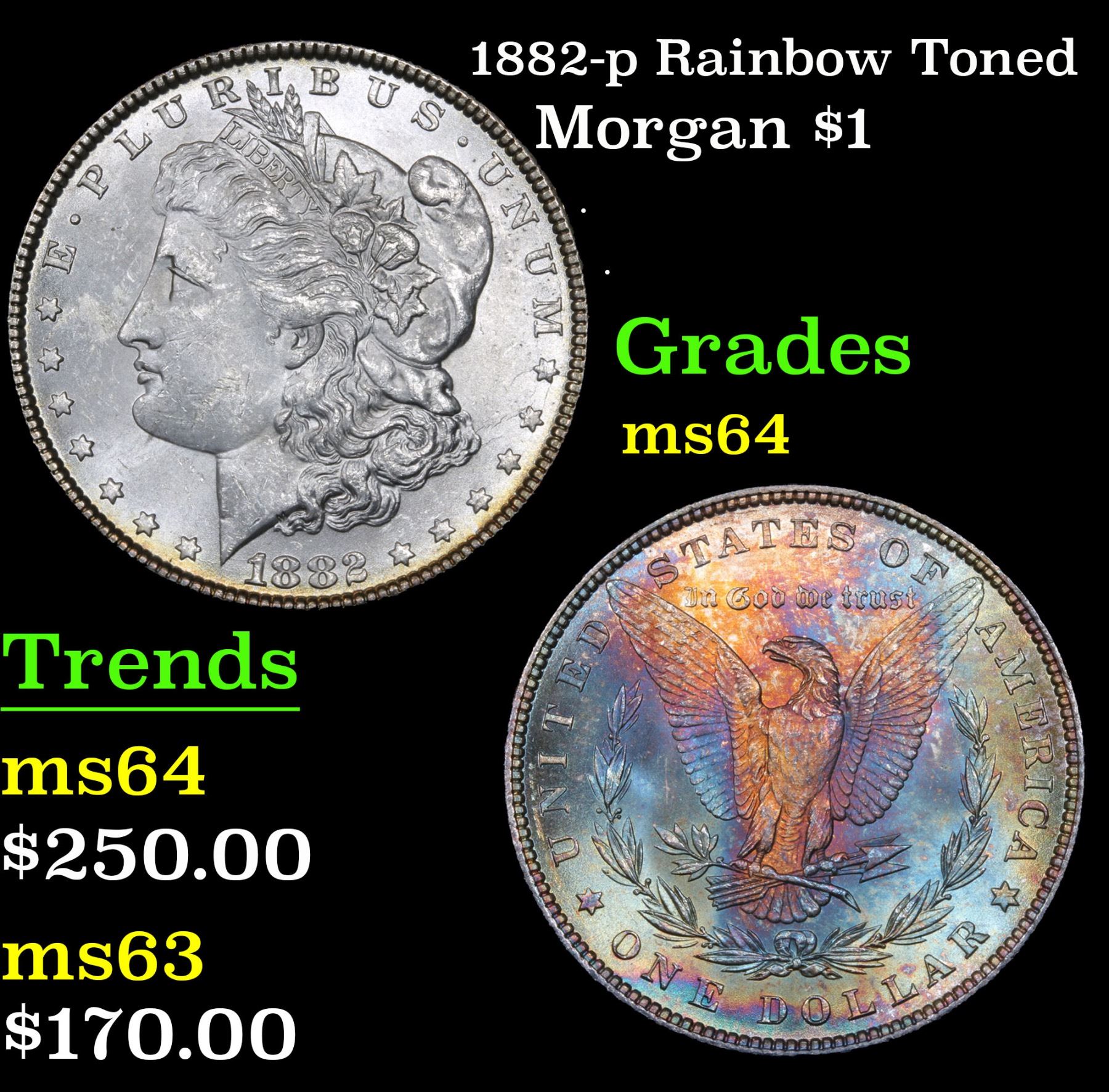 1882-p Rainbow Toned . . Morgan Dollar $1 Grades Choice Unc.