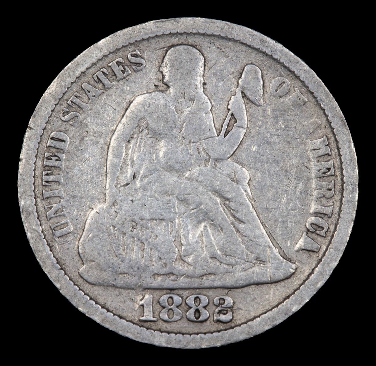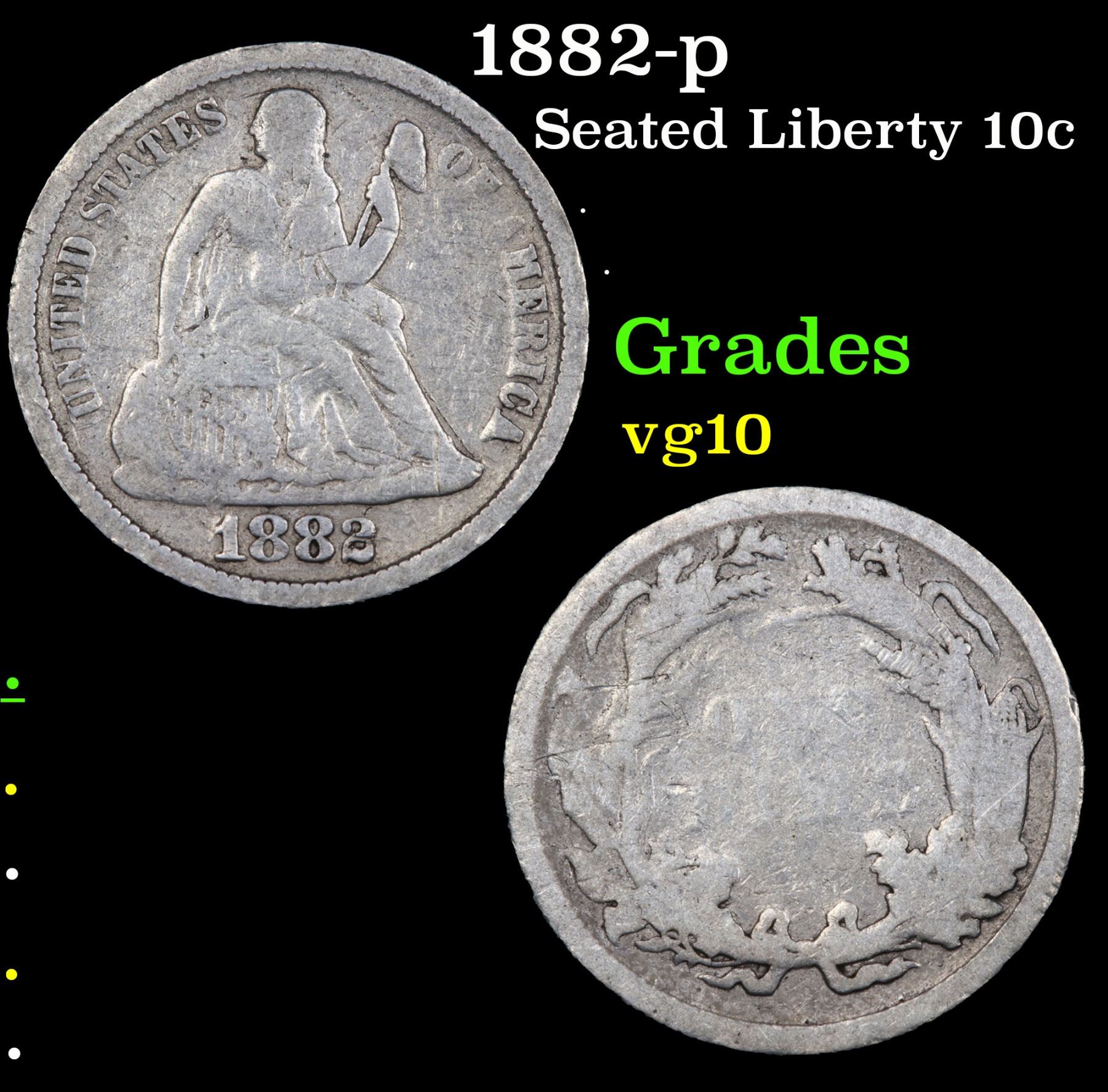 1882-p Seated Liberty Dime 10c Grades vg+.