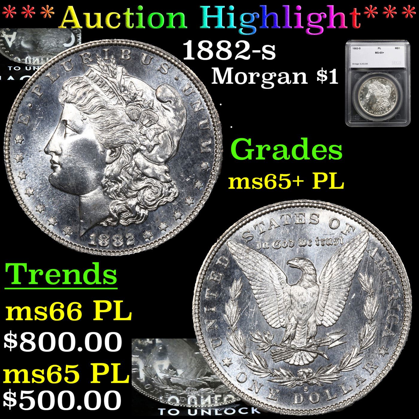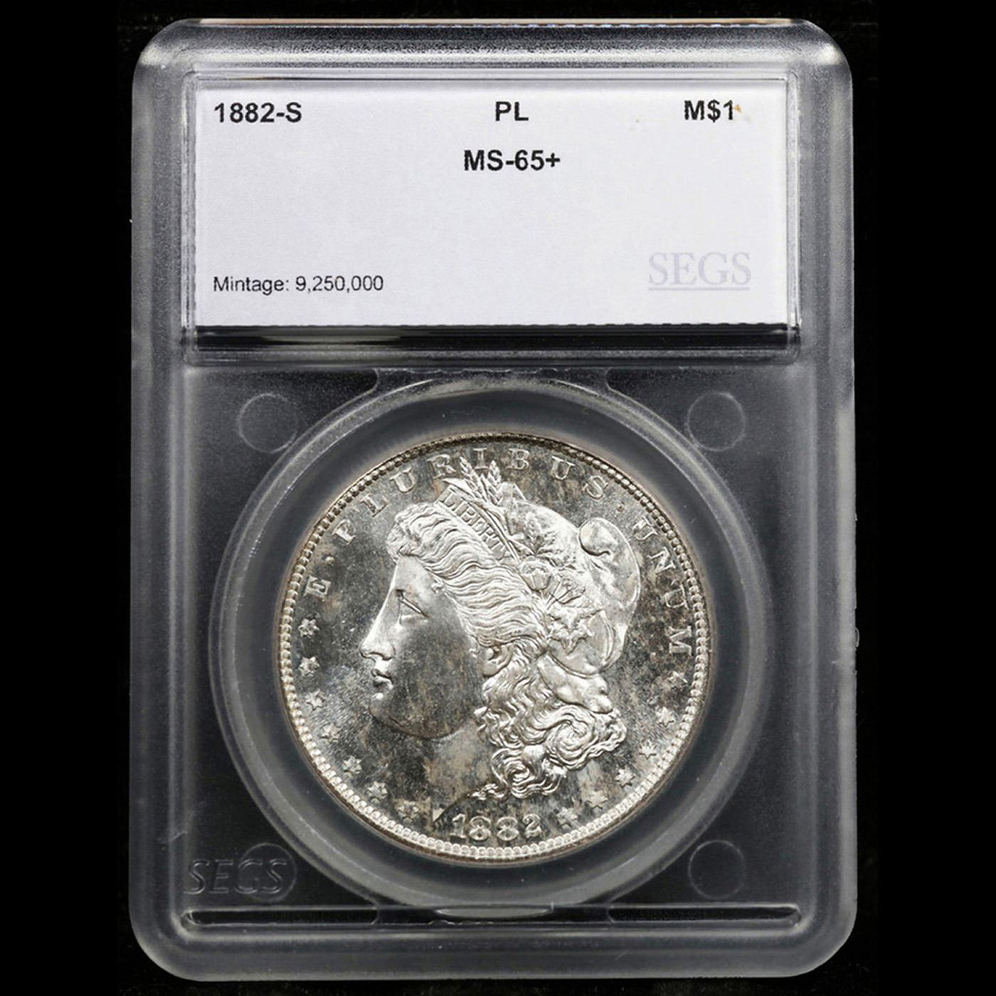 1882-s Morgan Dollar $1 Graded ms65+ PL By SEGS. A Corey's Pick, Bid to Win, Don't let it get Away Coin