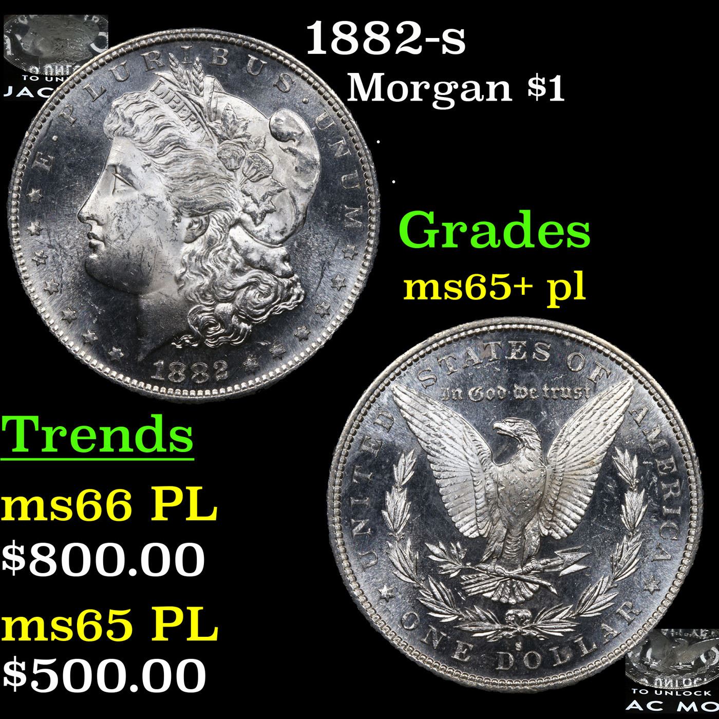 1882-s Morgan Dollar $1 Graded ms65+ pl By SEGS.