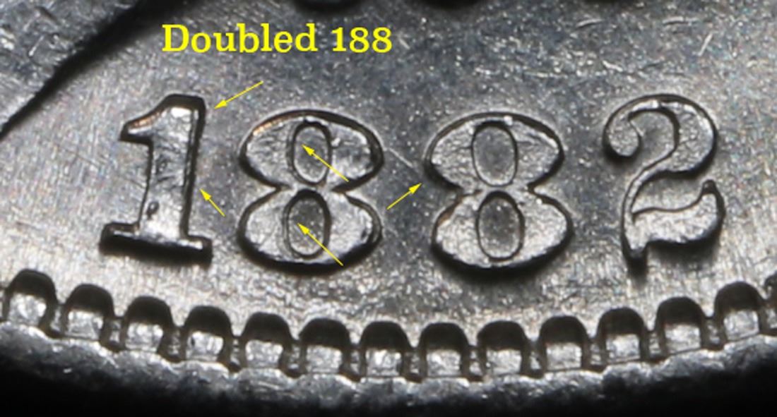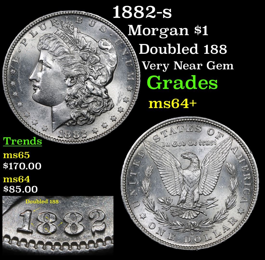 1882-s Doubled 188 Very Near Gem Morgan Dollar $1 Grades Choice+ Unc.