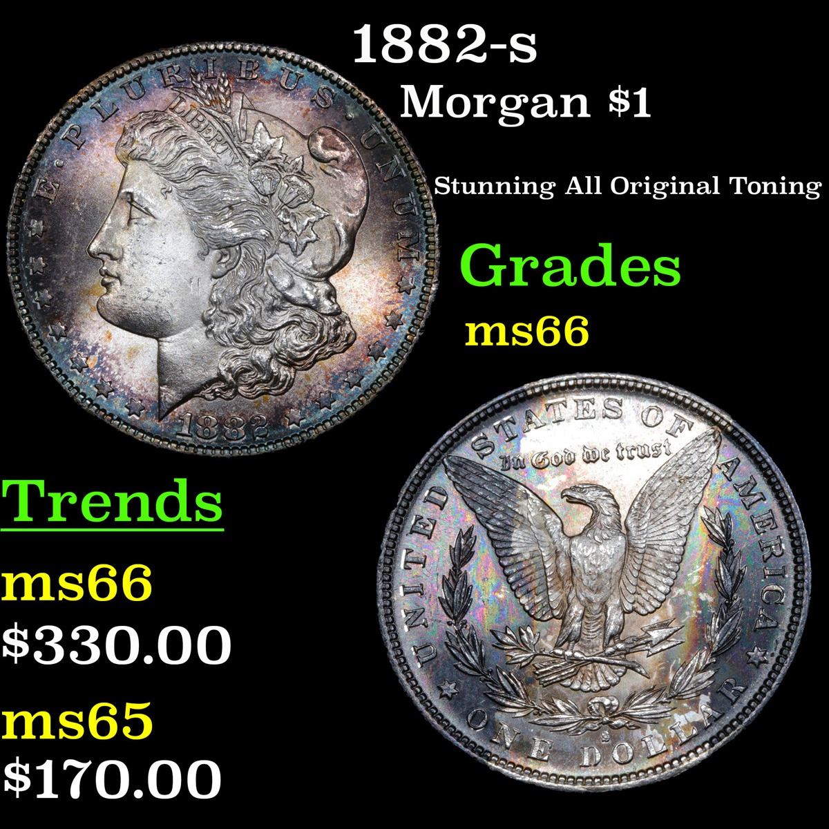1882-s Stunning All Original Toning . Morgan Dollar $1 Grades GEM+ Unc. A Corey's Pick