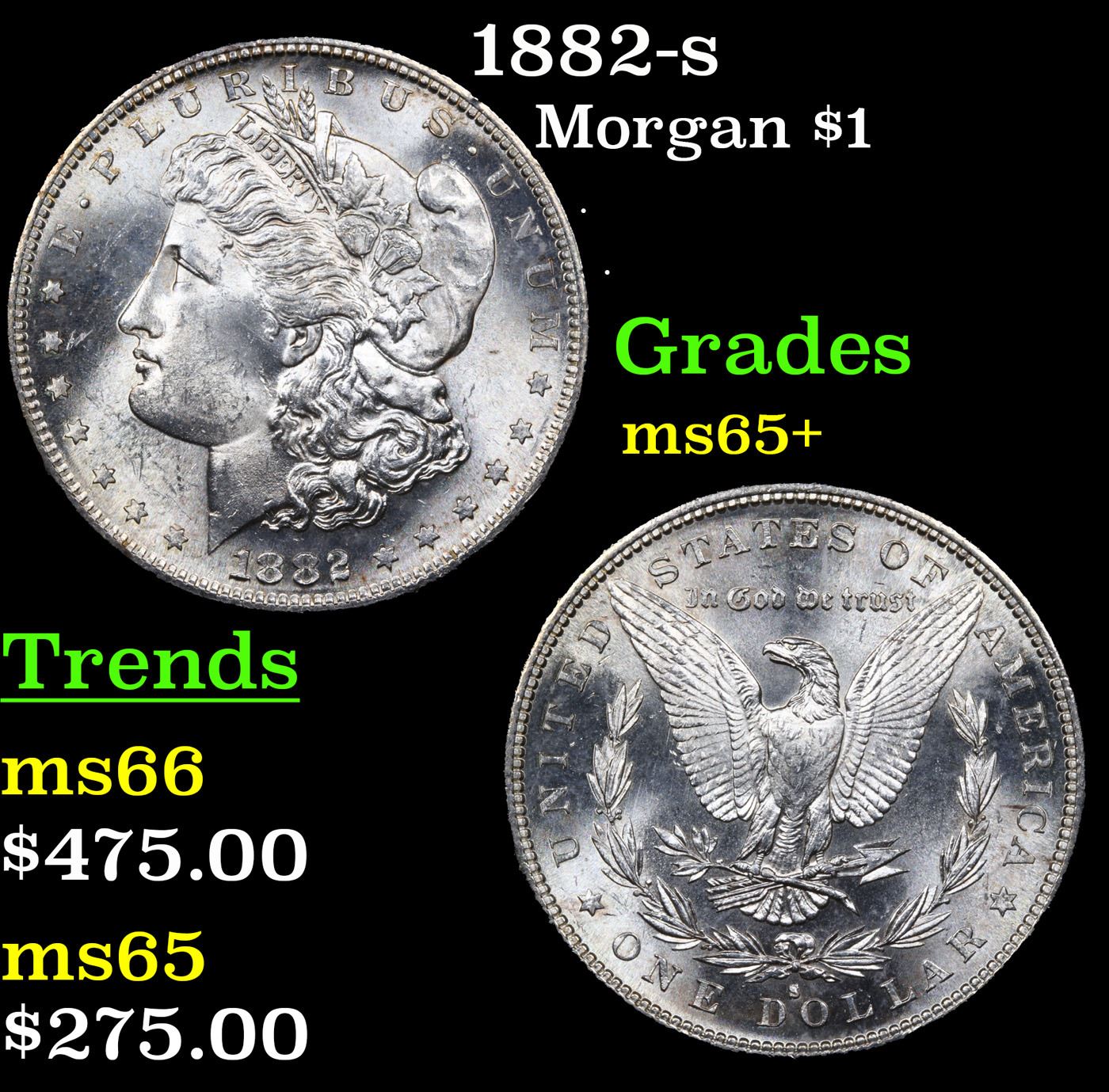 1882-s Morgan Dollar $1 Grades GEM+ Unc.
