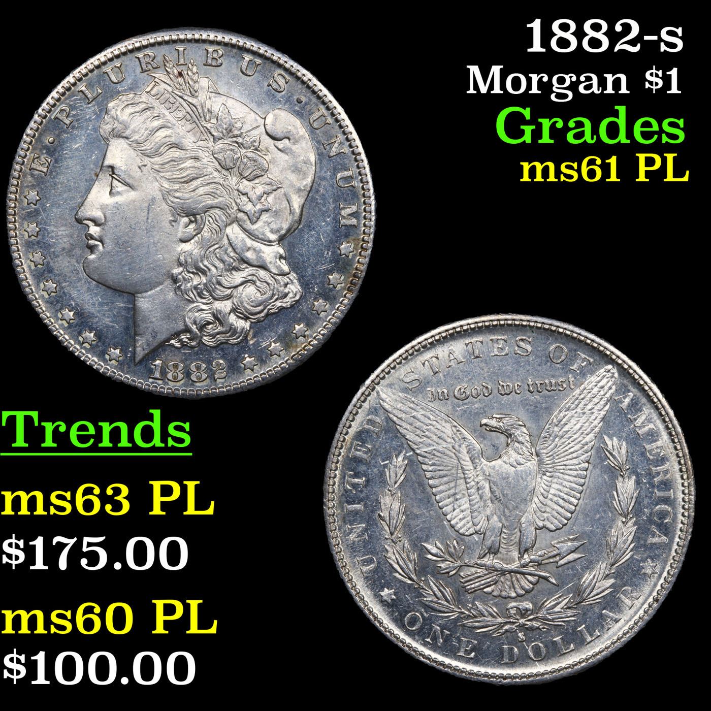 1882-s Morgan Dollar $1 Grades Unc+ PL.