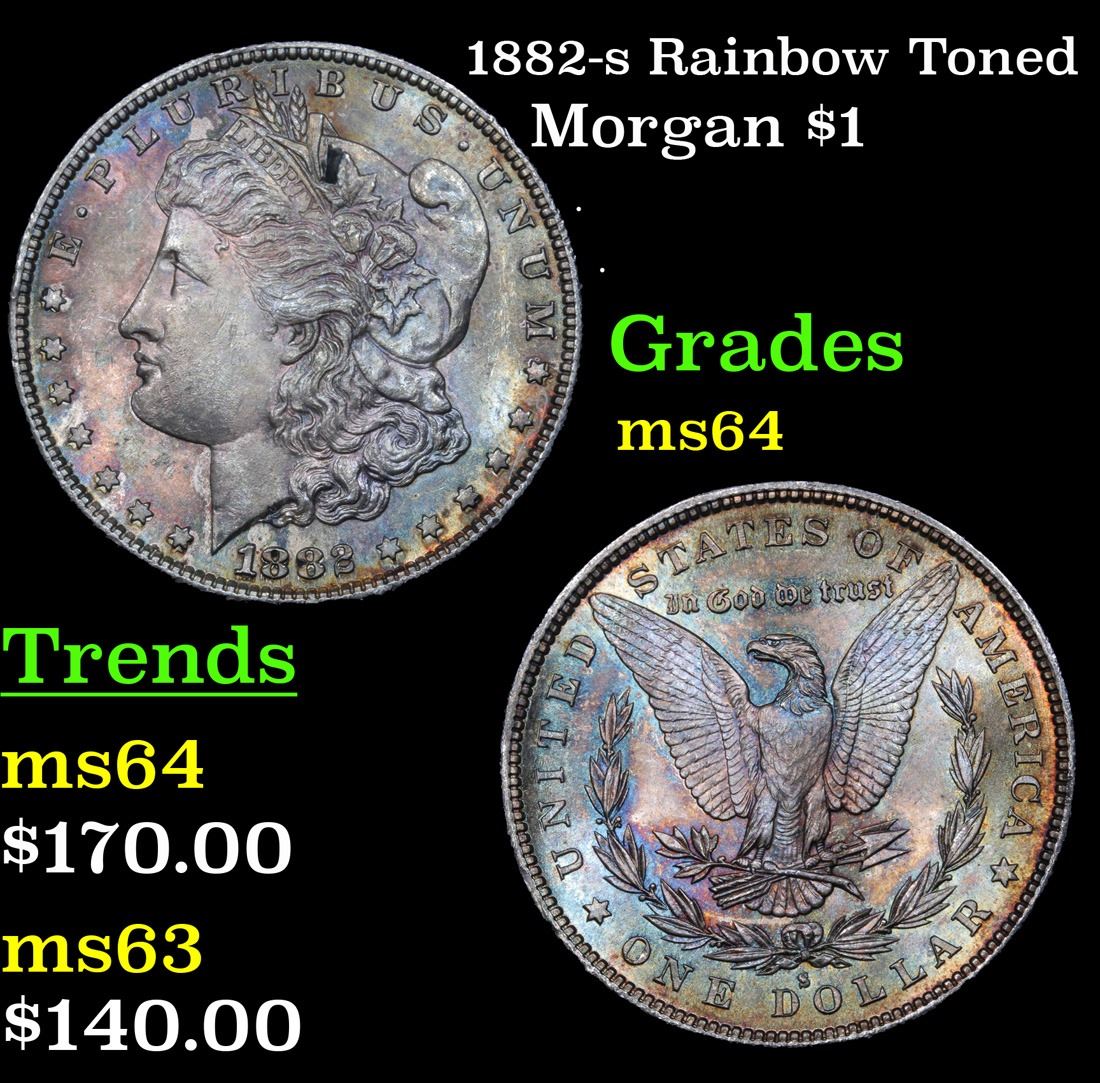 1882-s Rainbow Toned . . Morgan Dollar $1 Grades Choice Unc.