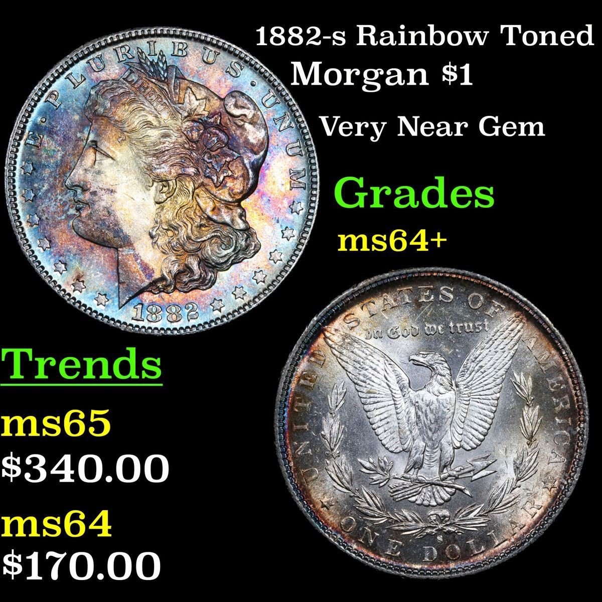1882-s Rainbow Toned . Very Near Gem Morgan Dollar $1 Grades Choice+ Unc.
