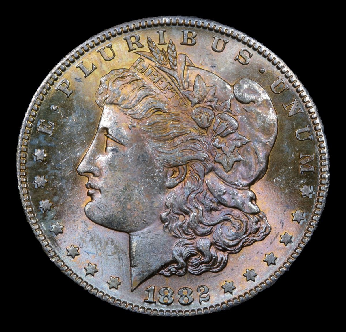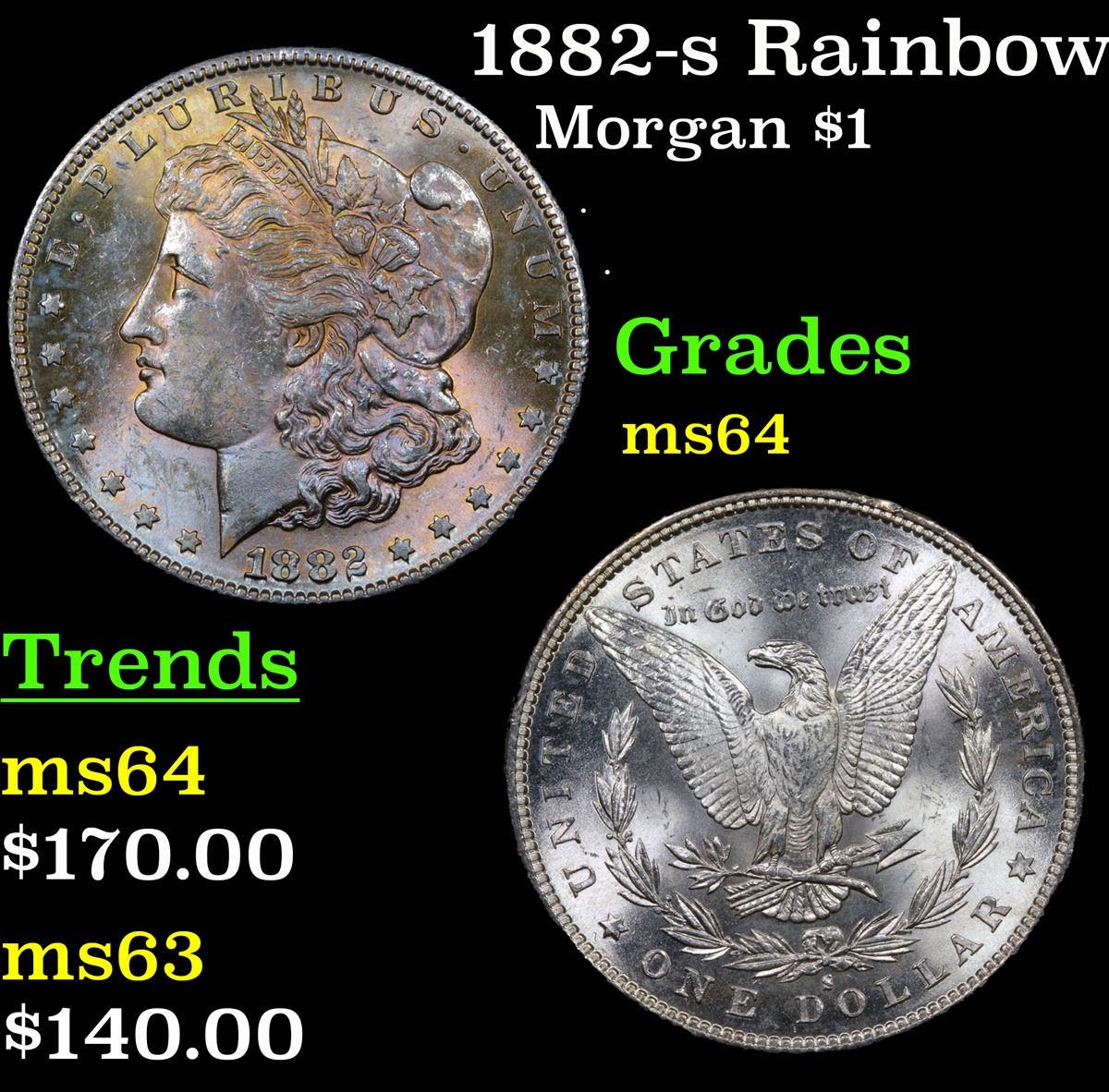 1882-s Rainbow Toned Morgan Dollar $1 Grades Choice Unc.