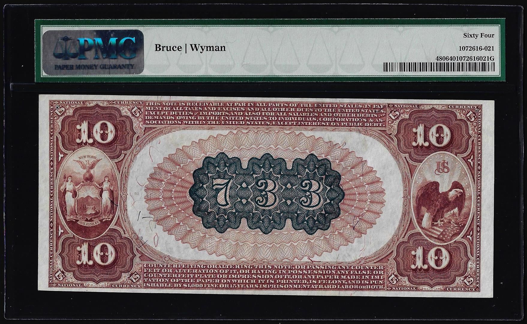 1882BB $10 Commerce New York, NY CH# 733 National Note PMG Choice Uncirculated 64