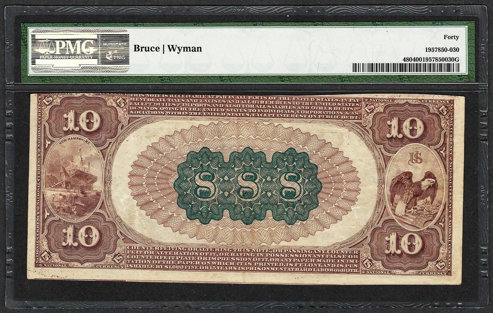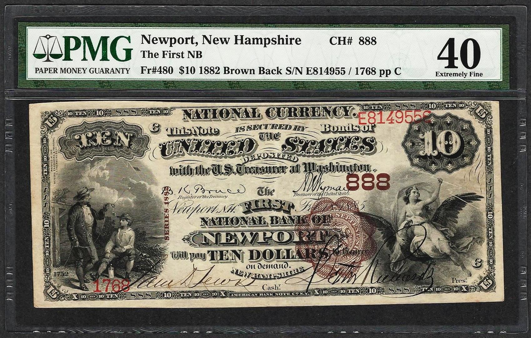 One 1882BB $10 First NB of Newport, NH CH# 888 National Currency Note PMG Extremely Fine 40. PMG Certified.