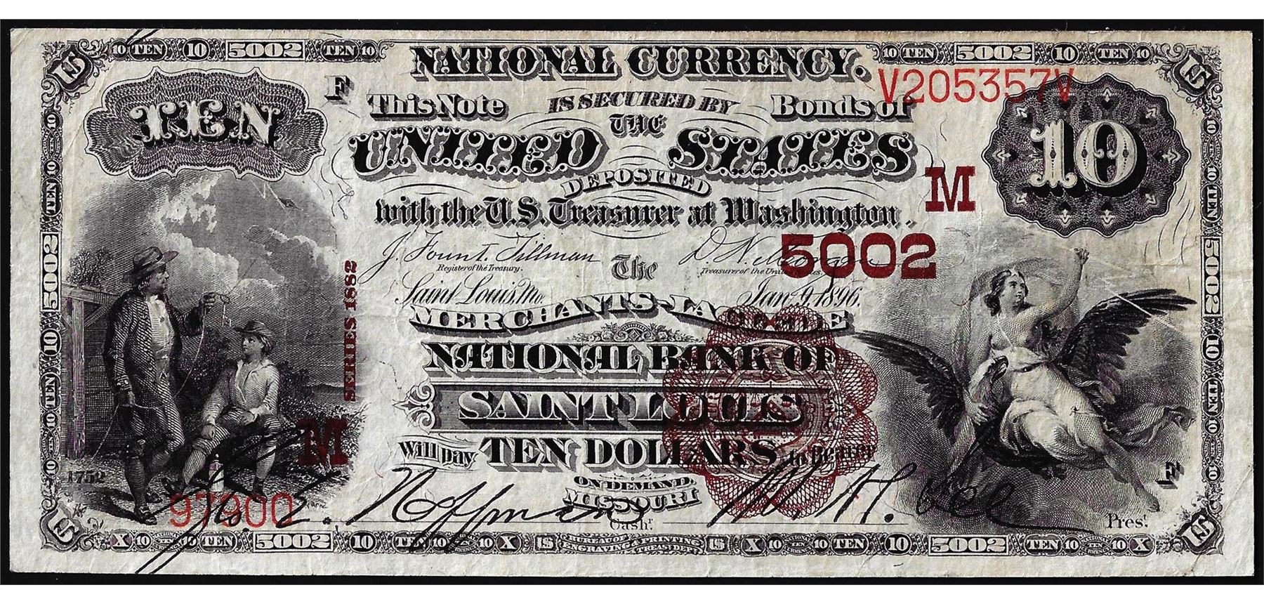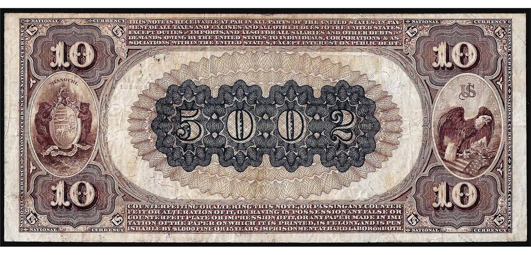 1882BB $10 Merchants-Laclede Saint Louis, MO CH# 5002 National Currency Note
