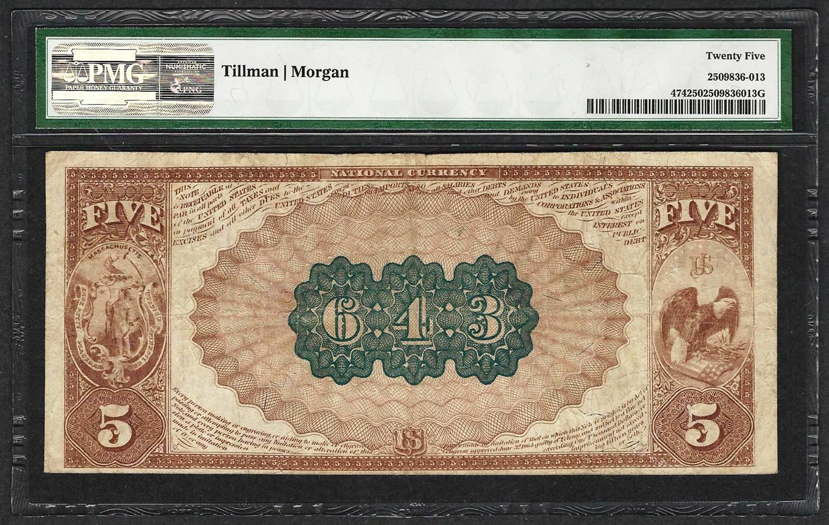 1882BB $5 Atlantic NB Boston, MA CH# 643 National Currency Note PMG Very Fine 25