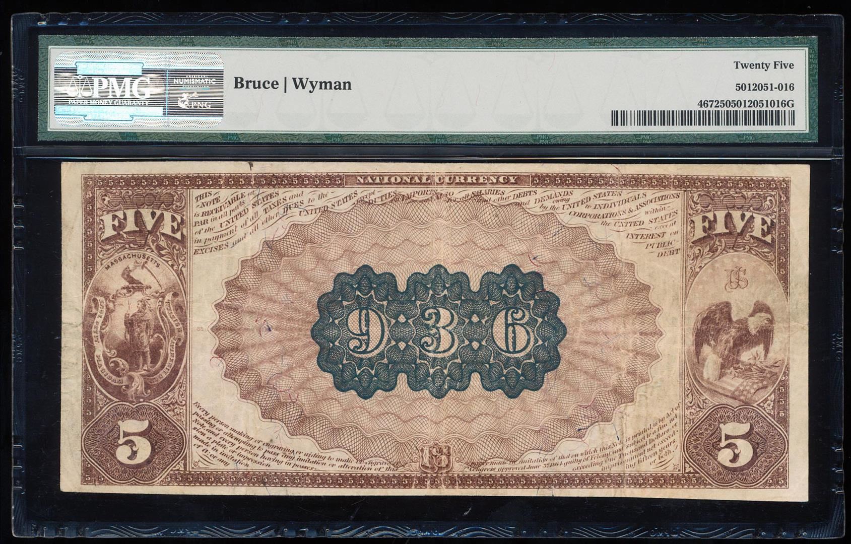 1882BB $5 Globe NB of Boston, MA CH# 936 National Bank Note PMG Very Fine 25