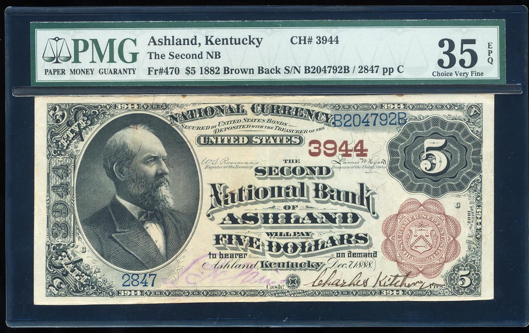 One 1882BB Second NB of Ashland, KY CH# 3944 National Note PMG Choice Very Fine 35EPQ. PMG Certified.