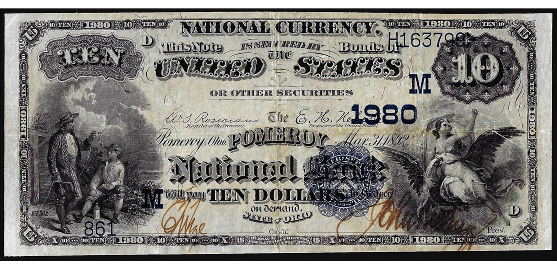 One 1882DB $10 Pomeroy, Ohio CH# 1980 National Currency Note.