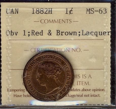 1882H 1¢ ICCS MS63RD, Obv 1, Lacquered.