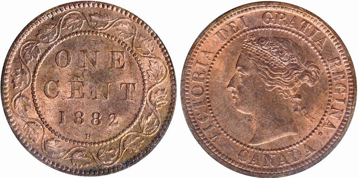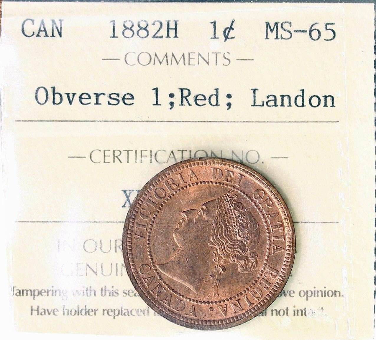 1882H 1¢ Obv.1 ICCS Gem Mint State-65 Red. A superb and superior Pristine issue with great eye appeal and superb fields. Ex. Landon example.