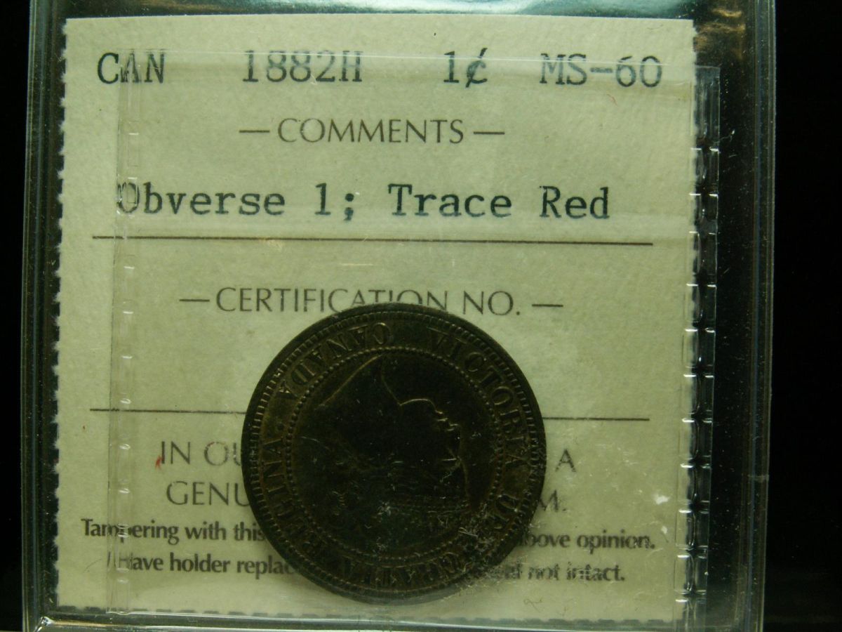 1882H 1¢ Obv 1 ICCS MS60; Trace Red
