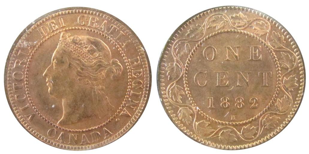 1882H 1¢ Obv 1 ICCS MS65RD. 90% red. TOP 3 ICCS POP report.