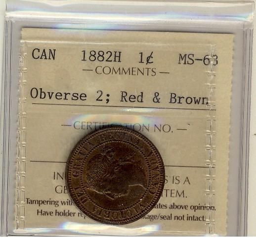 1882H 1¢ Obv 2 ICCS MS63 Red Brown