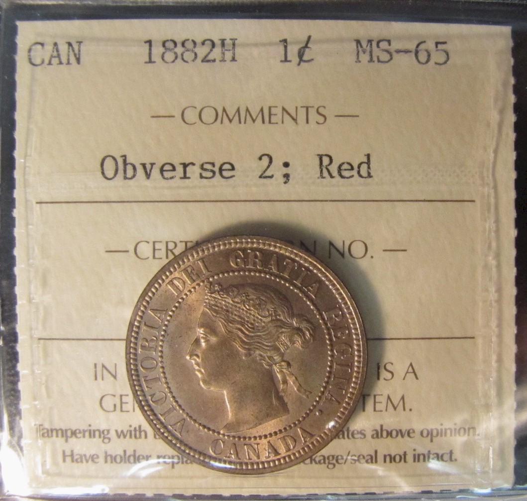 1882H 1¢ Obv 2 ICCS MS65RD. 95% red with lustre. Another lovely example.