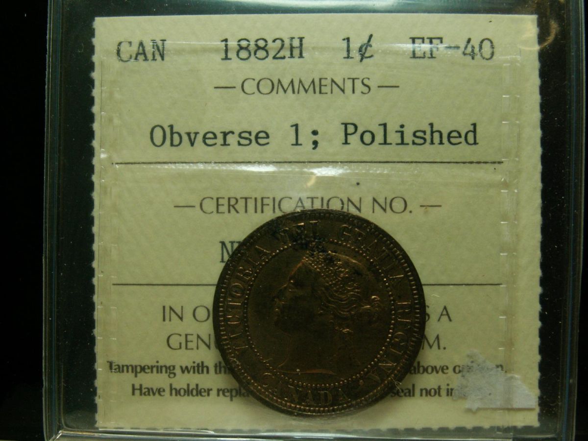 1882H 1¢ Obv1 ICCS EF40 Polished