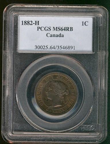 1882H 1¢ PCGS MS64RB.
