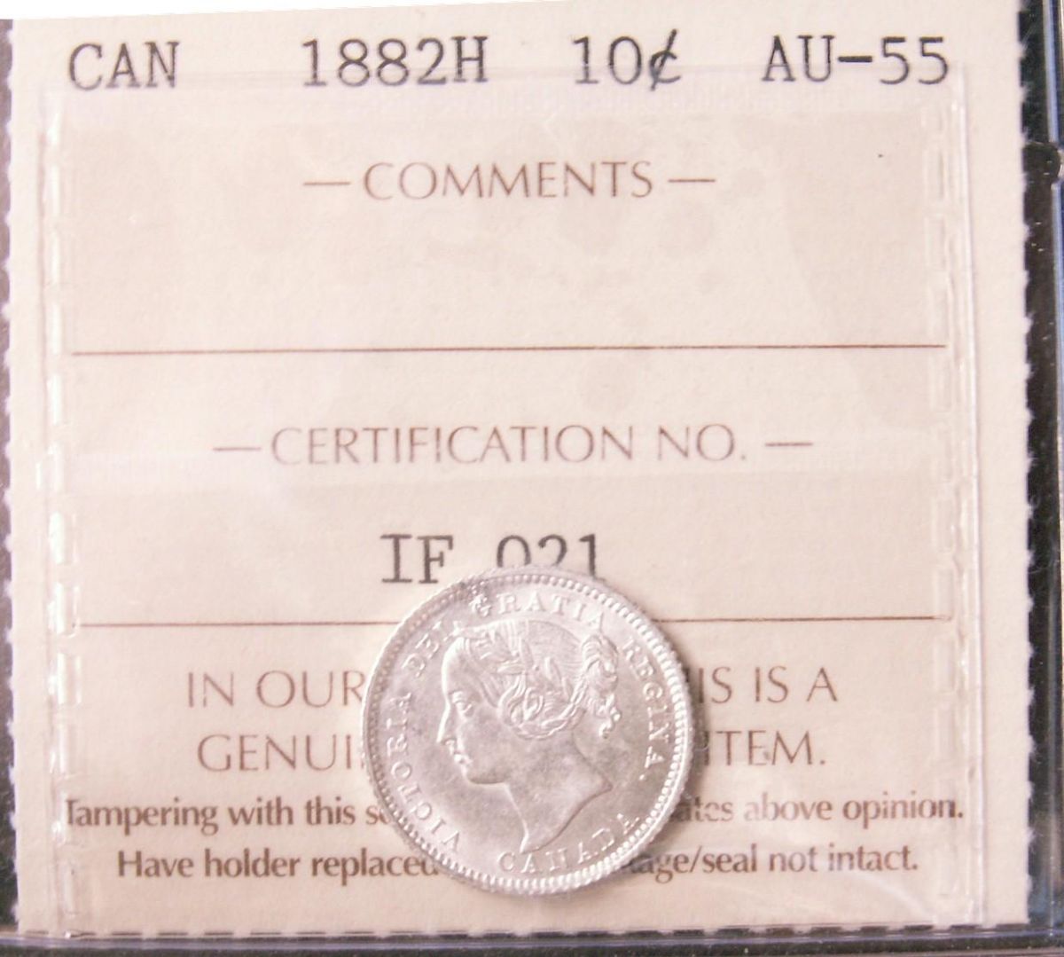 1882H 10¢ ICCS AU55. Well struck and blast white example.