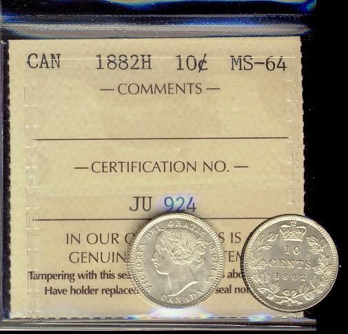 1882H 10¢ ICCS MS64. Sparkling white issue. Top 4 graded.
