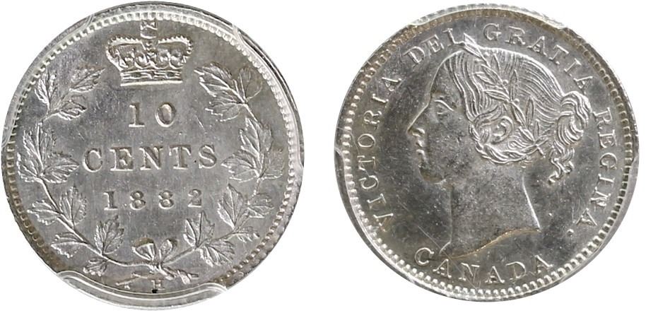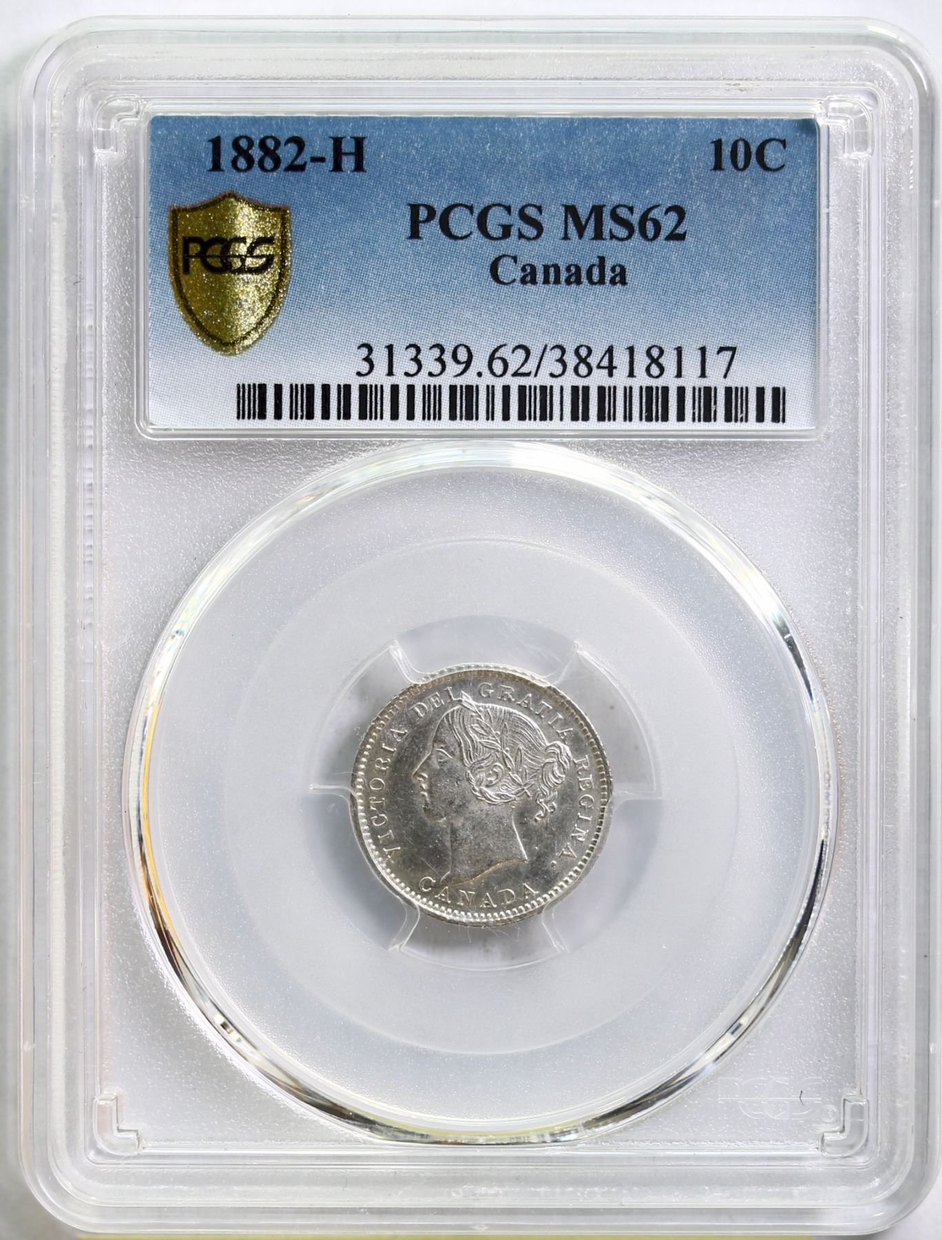 1882H 10¢ PCGS Choice Mint State-62 Fully brilliant and lustrous with a strong Cameo contrast.