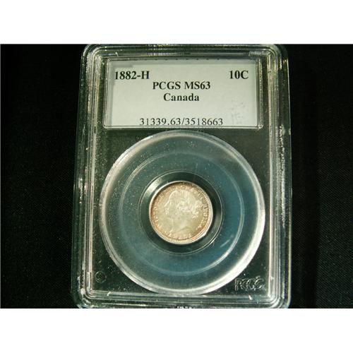 1882H 10¢ PCGS MS63.Nice russet tone over full underlying luster. A tough date!