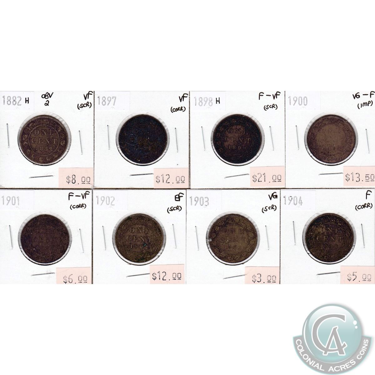 1882H-1904 Canada 1-cents Fine to Extra Fine (impaired). 8pcs