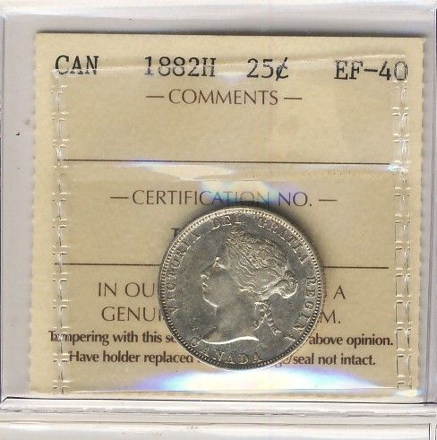 1882H 25¢ ICCS EF40. Nice example.
