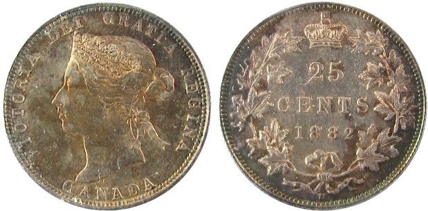 1882H 25¢ ICCS MS64. Lovely toning over full underlying lustre. Scarce date.