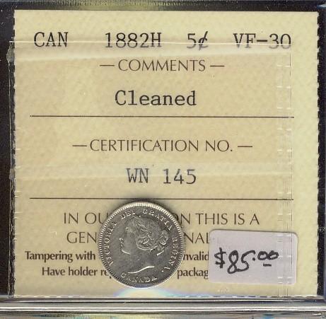 1882H 5¢ ICCS VF30 Cln