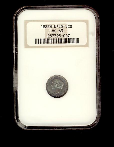 1882H 5¢ NGC MS63. Intense shades of green with underlying lustre.