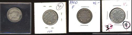 1882H F-12, 1888 VG-10, 1900 F-12, 1902 F-12. Lot of 4 pieces.