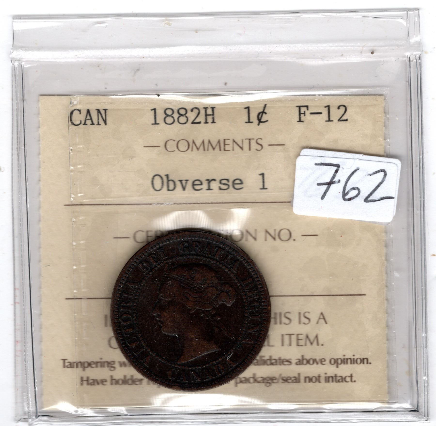 1882H LARGE CENT FINE 12, OB1, ICCS CERTIFIED