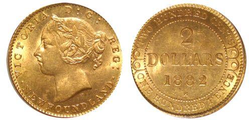 0540 - 1882H Newfoundland $2 Gold-PCGS MS63