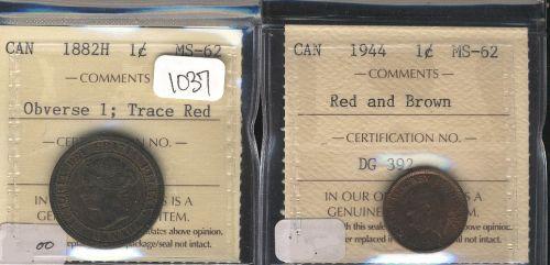 1882H Obv 1, 1944 both are Red/Brown and ICCS graded MS62