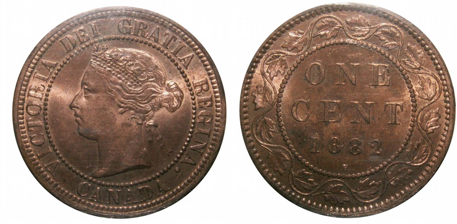 1882H Obv#1 ICCS MS65 Red THE FINEST KNOWN! 100% Red lustre. A VERY RARE date in pristine condition. Tied for finest.