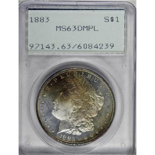 <B>1883 $1 MS63 Deep Mirror Prooflike PCGS.</B></I> PCGS Population (213/293). NGC Census: (79/180). Numismedia Wsl. Price for NGC/PCGS coin in MS63: $140. (#97143)<BR><BR><b>Shipping:</b> Coins & Currency (<a target="_blank" href="http://www.heritageauctions.com/common/shipping.php">view shipping information</a>)