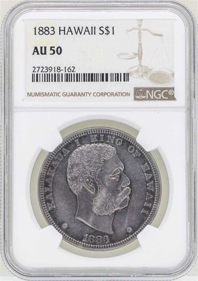 One 1883 $1 Kingdom of Hawaii Coin NGC AU50. NGC Certified.