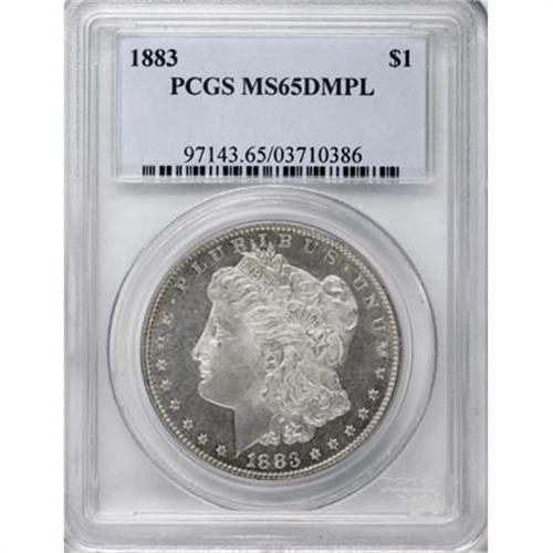 <B>1883 $1 MS65 Deep Mirror Prooflike PCGS.</B></I> The fields are flashy and display almost watery reflectivity while the dusty rose devices are lightly frosted. A sharply struck Gem, with a single horizontal scratch on Liberty's cheek noted. Population: 69 in 65, 7 finer (12/07).<BR><BR><b>Shipping:</b> Coins & Currency (<a target="_blank" href="http://www.heritageauctions.com/common/shipping.php">view shipping information</a>)