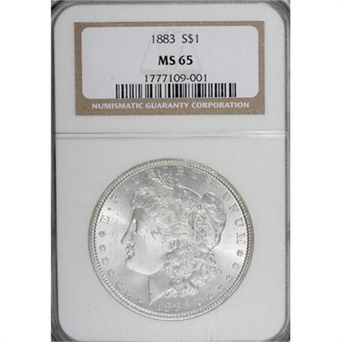 <B>1883 $1 MS65 NGC.</B></I> NGC Census: (3308/775). PCGS Population (3322/756). Mintage: 12,291,039. Numismedia Wsl. Price for NGC/PCGS coin in MS65: $145. (#7142)<BR><BR><B>Coin Engraver:</B> George T. Morgan<BR><BR><b>Shipping:</b> Coins & Currency (<a target="_blank" href="http://www.heritageauctions.com/common/shipping.php">view shipping information</a>)