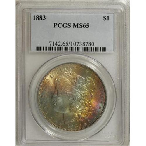 <B>1883 $1 MS65 PCGS.</B></I> PCGS Population (3304/728). NGC Census: (3273/765). Mintage: 12,291,039. Numismedia Wsl. Price for NGC/PCGS coin in MS65: $140. (#7142)<BR><BR><B>Coin Engraver:</B> George T. Morgan<BR><BR><b>Shipping:</b> Coins & Currency (<a target="_blank" href="http://www.heritageauctions.com/common/shipping.php">view shipping information</a>)