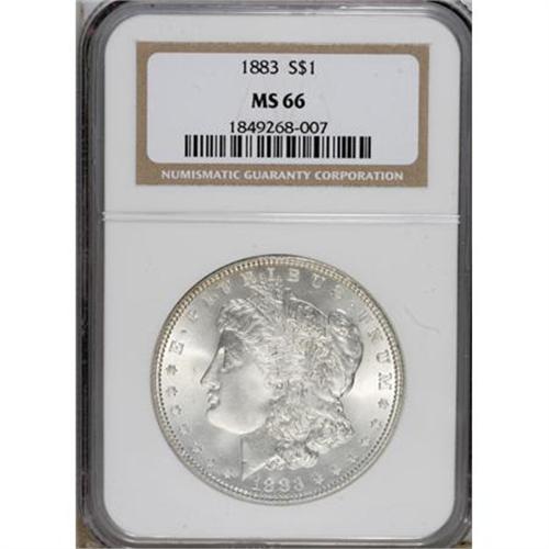 <B>1883 $1 MS66 NGC.</B></I> NGC Census: (663/96). PCGS Population (664/53). Mintage: 12,291,039. Numismedia Wsl. Price for NGC/PCGS coin in MS66: $380. (#7142)<BR><BR><b>Shipping:</b> Coins & Currency (<a target="_blank" href="http://www.heritageauctions.com/common/shipping.php">view shipping information</a>)