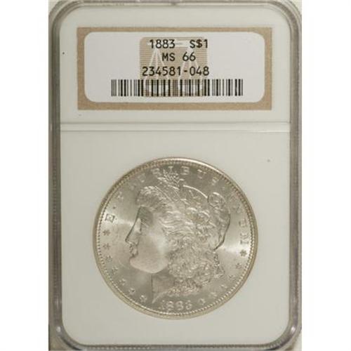 <B>1883 $1 MS66 NGC.</B></I> Well-defined with lovely luster and a hint of steel-gray patina in the fields. This pleasing early P-mint piece displays a die crack through the lower part of the date.<BR><I>From The Vanek Collection.</B></I><BR><BR><b>Shipping:</b> Coins & Currency (<a target="_blank" href="http://www.heritageauctions.com/common/shipping.php">view shipping information</a>)