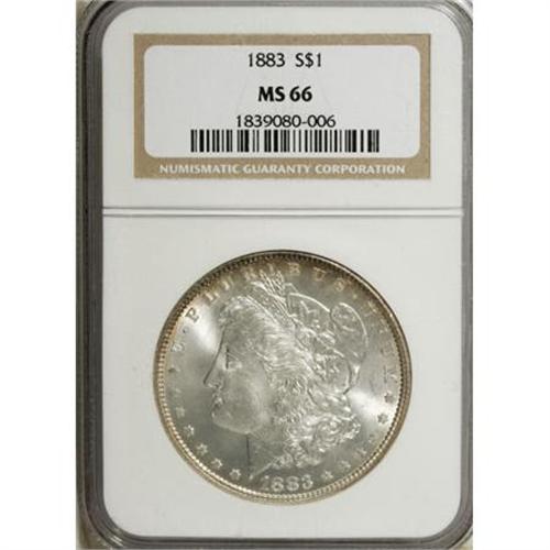 <B>1883 $1 MS66 NGC.</B></I> NGC Census: (689/103). PCGS Population (699/58). Mintage: 12,291,039. Numismedia Wsl. Price for NGC/PCGS coin in MS66: $380. (#7142)<BR><BR><B>Coin Engraver:</B> George T. Morgan<BR><BR><b>Shipping:</b> Coins & Currency (<a target="_blank" href="http://www.heritageauctions.com/common/shipping.php">view shipping information</a>)