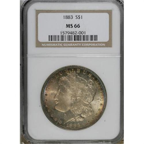 <B>1883 $1 MS66 NGC.</B></I> NGC Census: (689/105). PCGS Population (702/58). Mintage: 12,291,039. Numismedia Wsl. Price for NGC/PCGS coin in MS66: $380. (#7142)<BR><BR><B>Coin Engraver:</B> George T. Morgan<BR><BR><b>Shipping:</b> Coins & Currency (<a target="_blank" href="http://www.heritageauctions.com/common/shipping.php">view shipping information</a>)